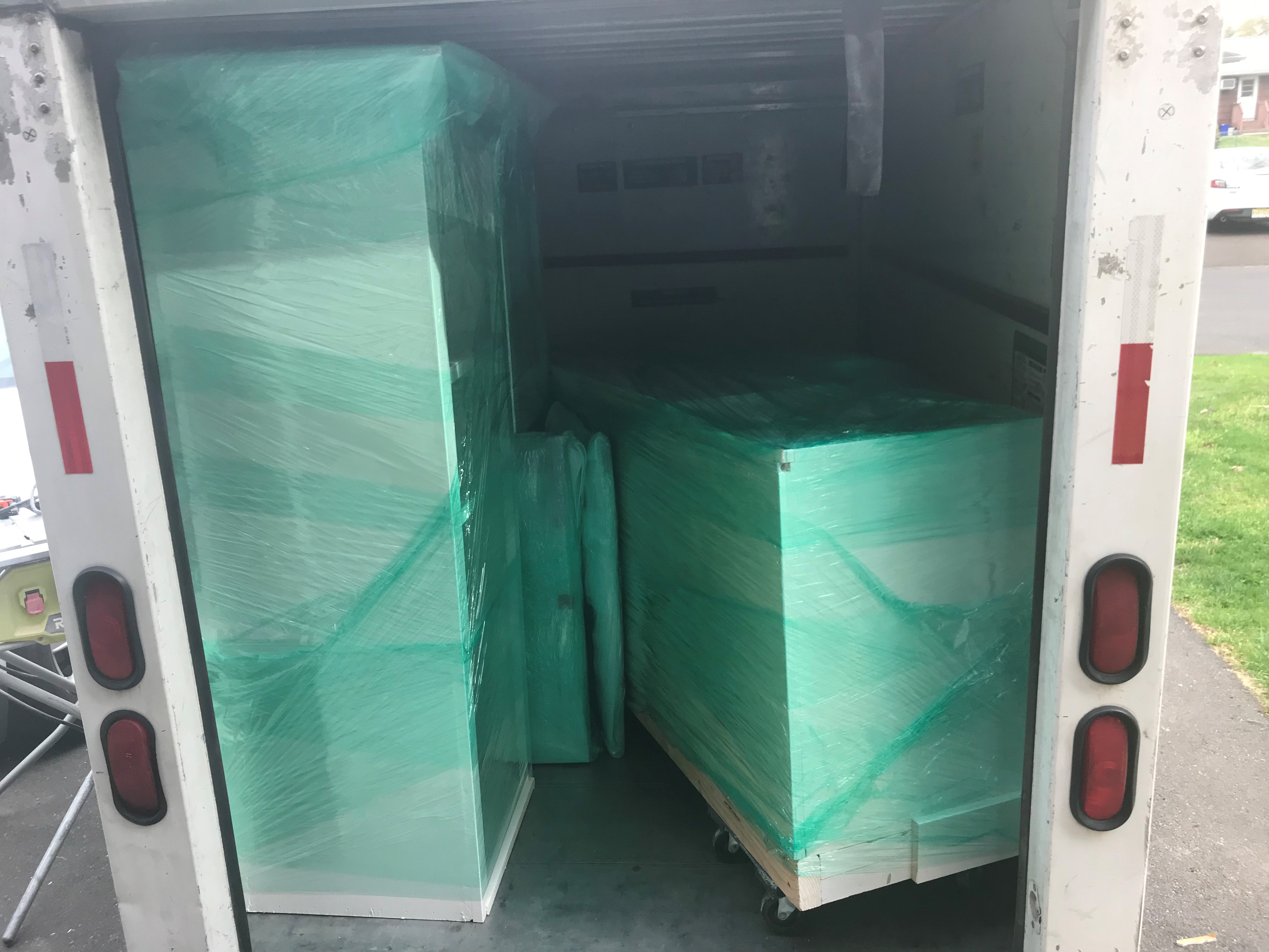 This was a custom order. This 8’x7’x18″ entertainment center with barn style doors was delivered on Saturday. We unfortunately didn’t get to install it yet but we’re looking forward to when the client is ready!