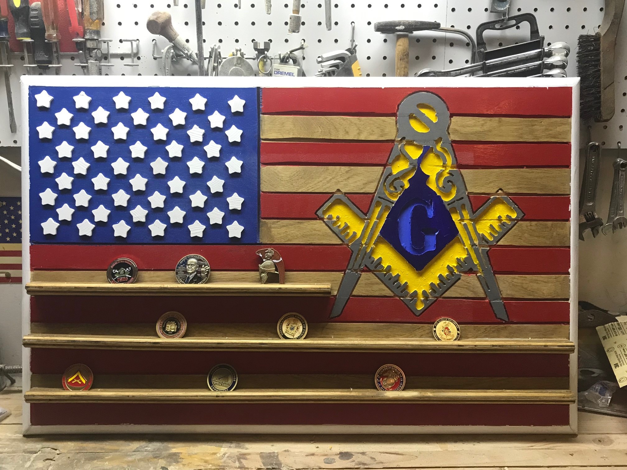 “36 X 48” Challenge coin Display flag (with engraved Masonic Emblem)